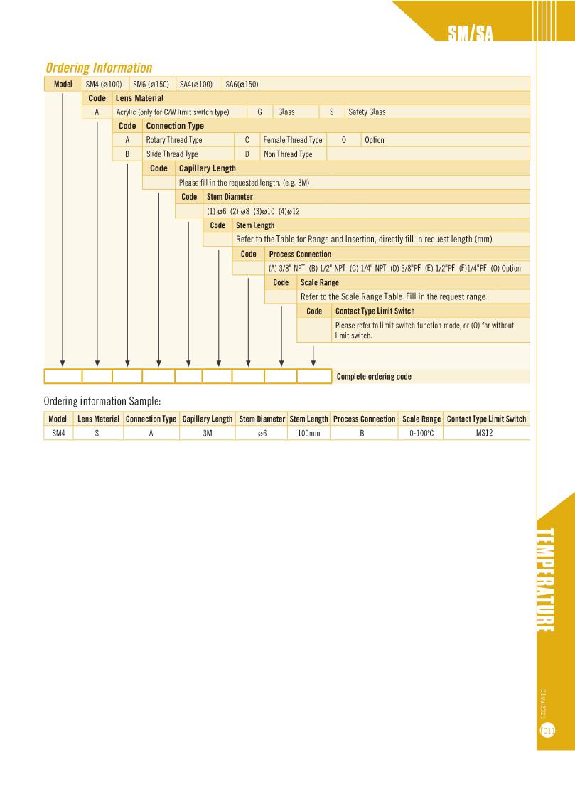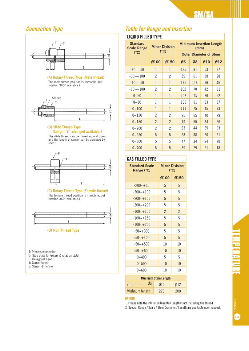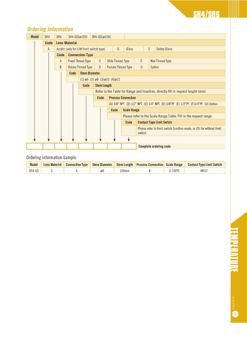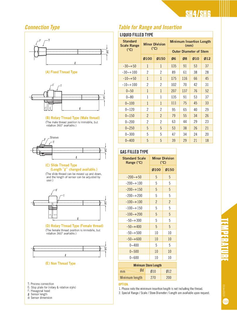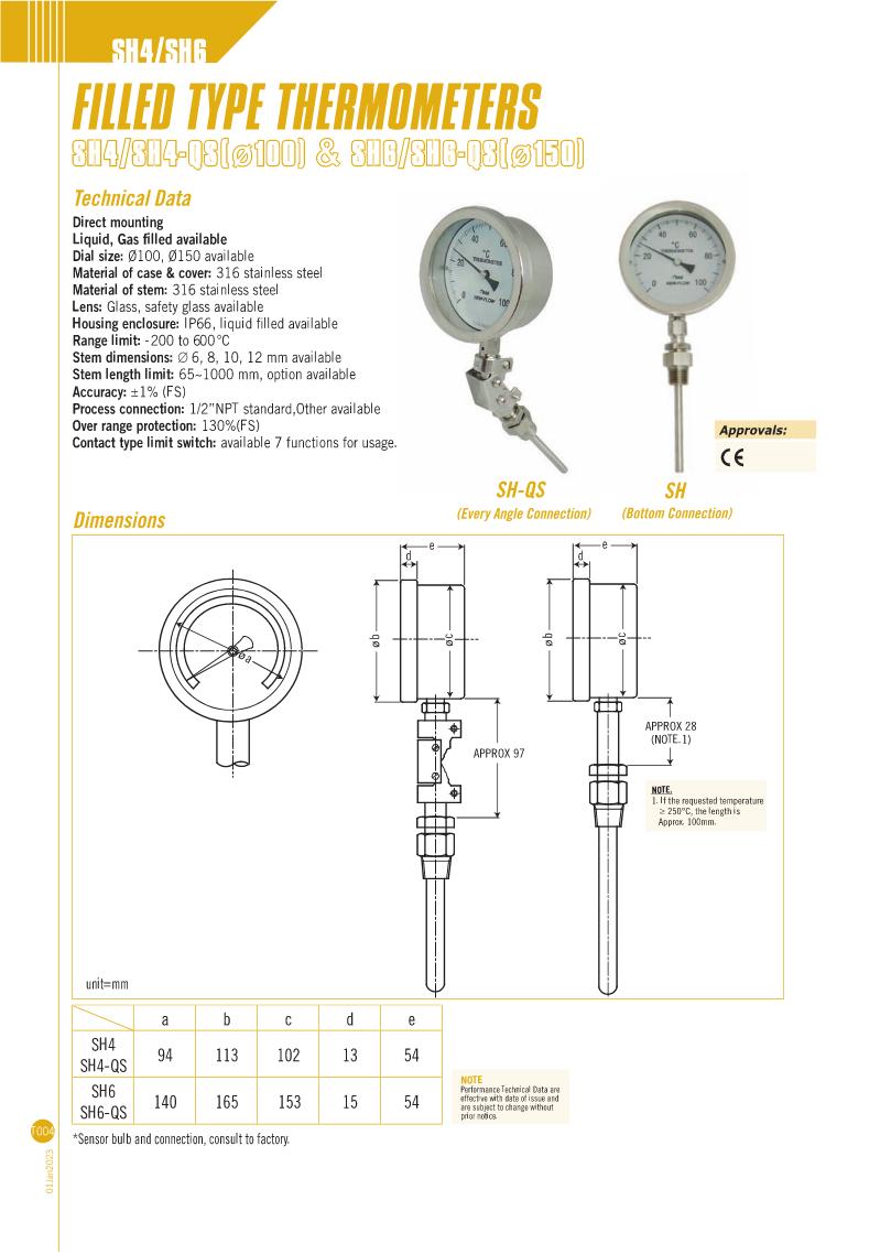 Filled Thermometers - SH4/SH4-QS & SH6/SH6-QS Serie