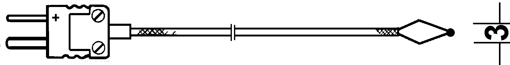 Preiswerter mineralisolierter Fühler, extrem dünn und schnell, bis zu 1100°C, Reaktionszeit: 3 s, Kabel: 1,5 m